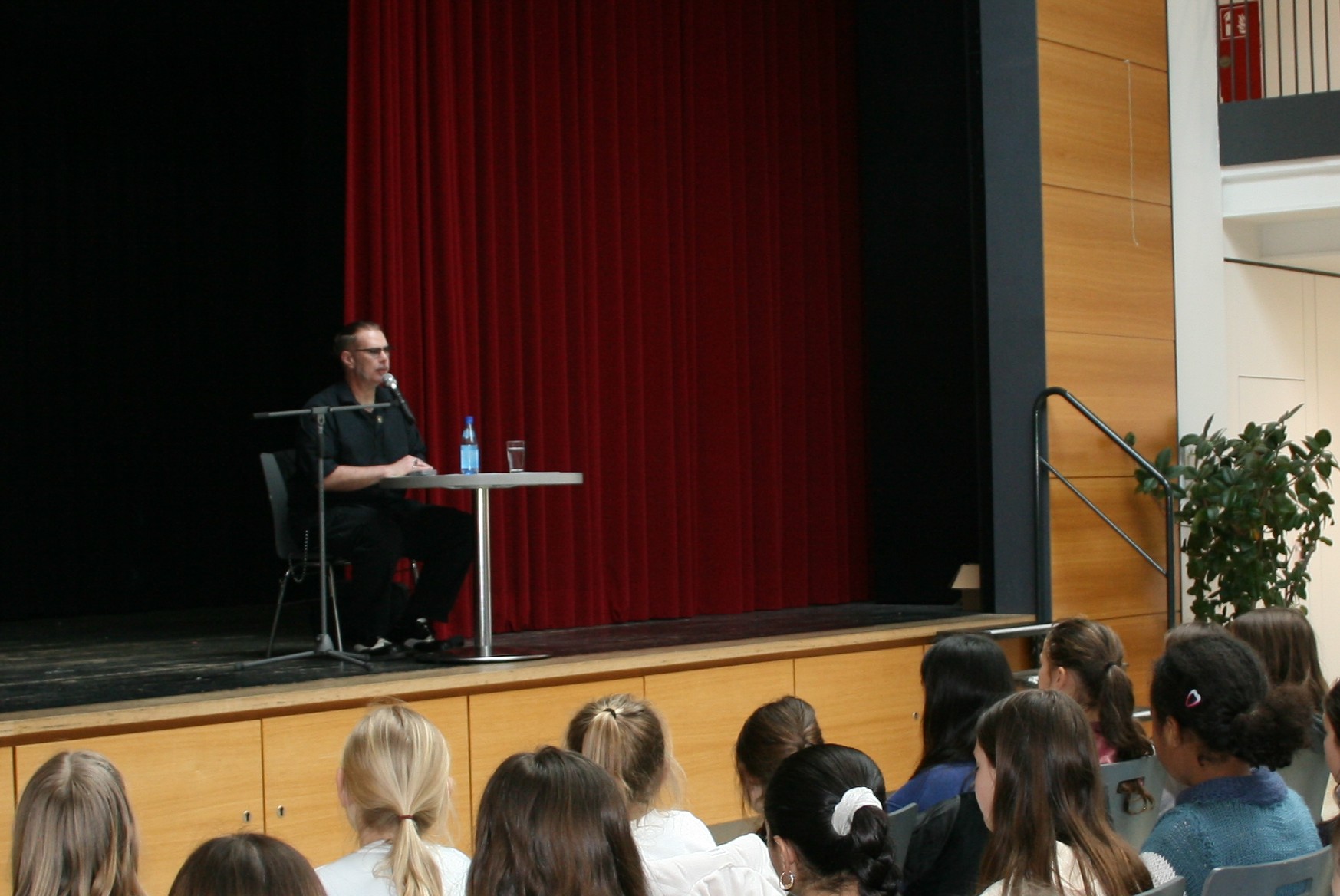Der Bestseller-Autor Markus Heitz, bekannt vor allem für seine Fantasy-Romane (z.B. „Die Zwerge“ und die vielen dazu gehörigen Nachfolgebände), las am Donnerstag, dem 05.03.2026, in der Großen Aula des Gymnasiums Donauwörth vor den Schülerinnen und Schülern der 5. Klassen aus seinen Jugendromanen „Irida und die Stadt der Geheimnisse“ und „Irida 2: Irida und das Rätsel der Ruine“. Anschließend stellte er sich seinem neugierigen Publikum für Fragen zur Verfügung.